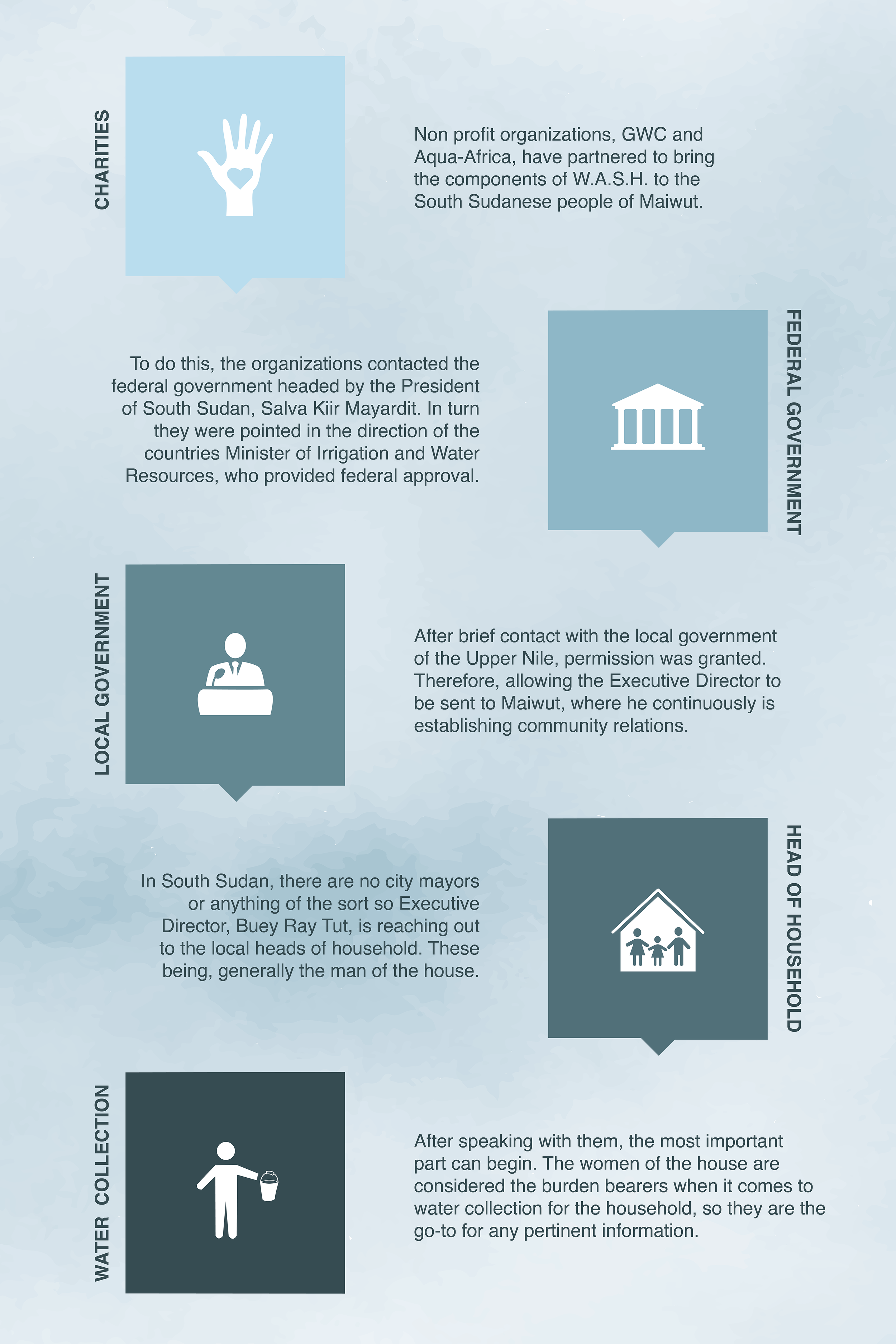 And this second poster depicts the process needed to go about reaching these communities, starting with the organizations working in the area, down to the heads of household.