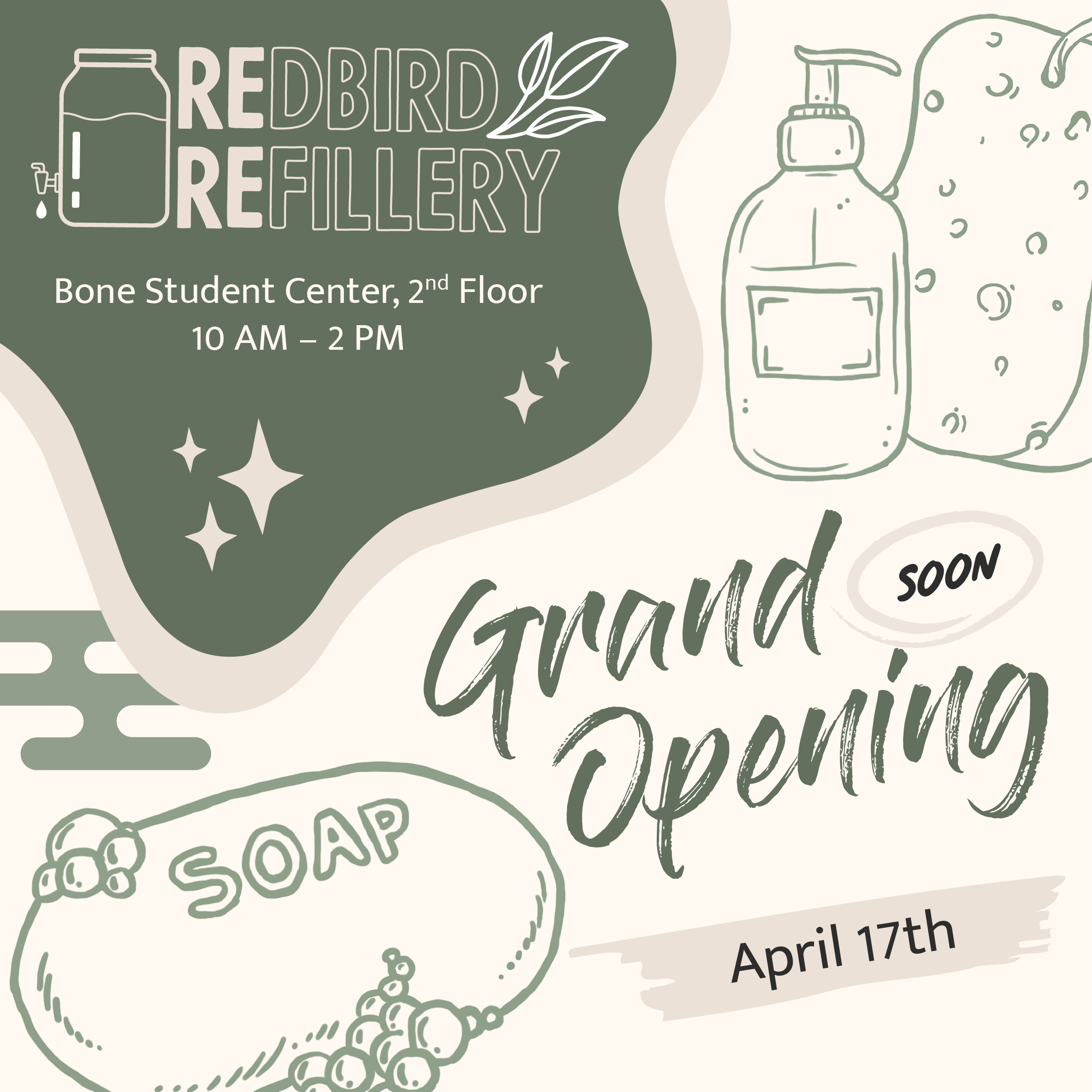 Redbird Refillery operates as a pop-up at various campus wide events, and also has a permanent refill station at The Office of Sustainability, located at 305 N. School St.
